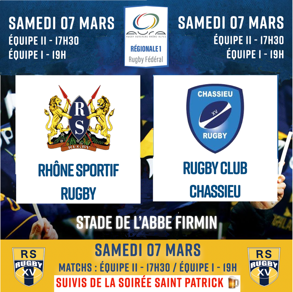 Club de Rugby Lyon : le Club du Rhône Sportif reçoit Chassieu ce samedi 7 mars à 17h.
